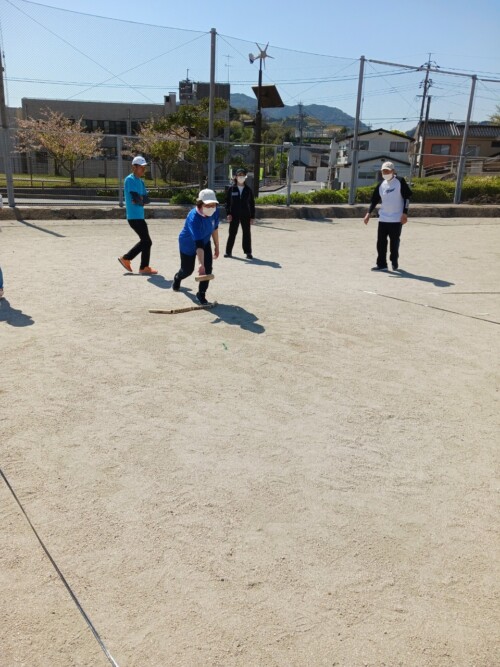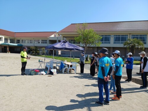 場所を少し移動して、先ずはモルック浜田代表のイーサンこと生田さんから全体説明をしてもらい2コートにチームをそれぞれ分かれてイーサンとオーサン(奥田さん)の指導のもと練習をしてそれからゲームをスタート。
