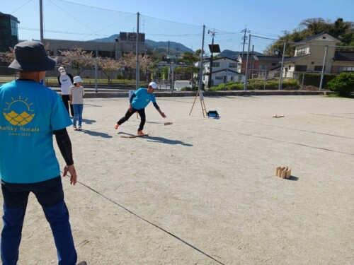 今回は最近話題になっている「モルック」という競技をするにあたり、モルック浜田の方に指導をしてもらって参加者さんに楽しんでもらおうと企画しました。