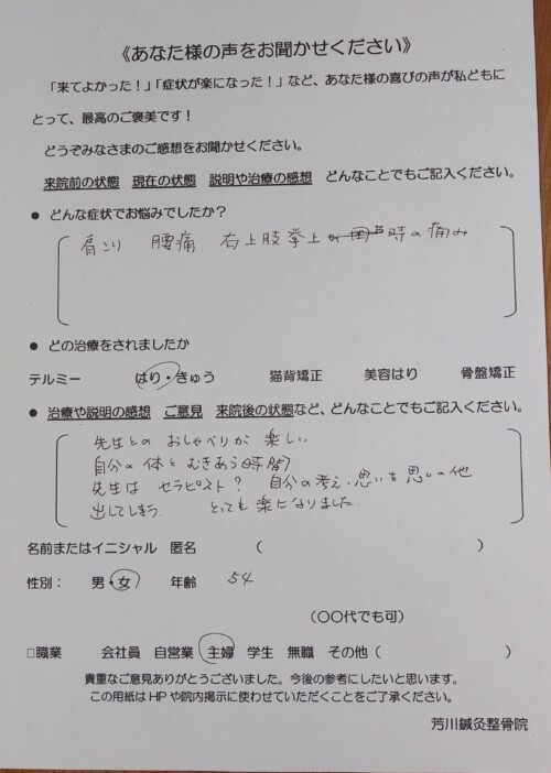 芳川鍼灸整骨院は、あなたの悩みを丁寧にお聞きし、原因や施術方法、料金をしっかりとお伝えいたします。