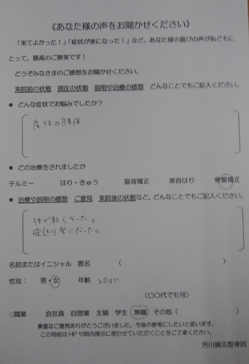 ●治療や説明の感想 ご意見 来院後の状態 など、どんなことでもご記入ください。