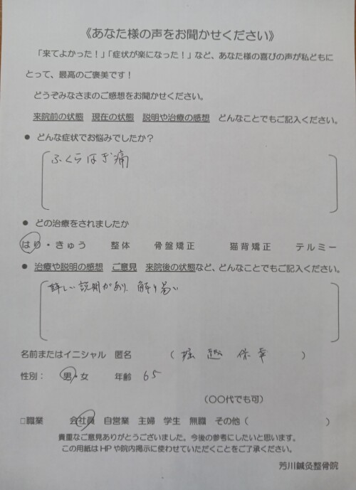 芳川鍼灸整骨院は、あなたの悩みを丁寧にお聞きし、原因や施術方法、料金をしっかりとお伝えいたします。